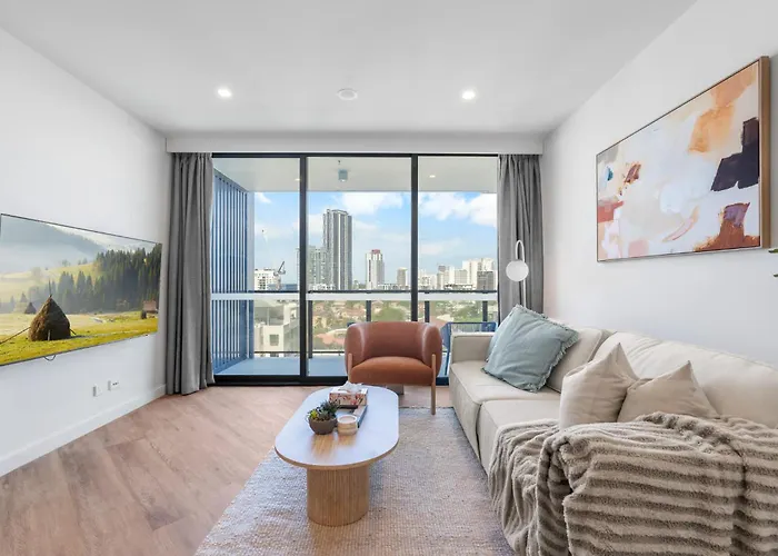 Das 120 m² große The Regal - Modern Lux 2Br High-Floor Apt With Ocean Views And Pool Gold Coast liegt in der Nähe von verschiedenen Attraktionen der Stadt: Gold Coast Hospital befindet sich unter anderem einen 6-minütigen Spaziergang von hier entfernt. Im Viertel Southport gelegen, bietet die Apartments Zugang zu einem Dachpool und einer Sauna.